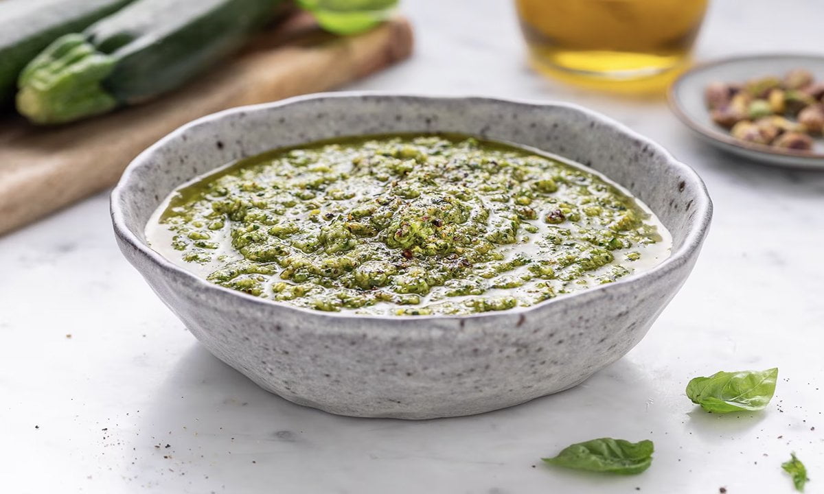 - Il momento magico: frulla due terzi delle zucchine con abbondante basilico fresco, aggiungendo un po’ acqua di cottura per un pesto cremoso e avvolgente.